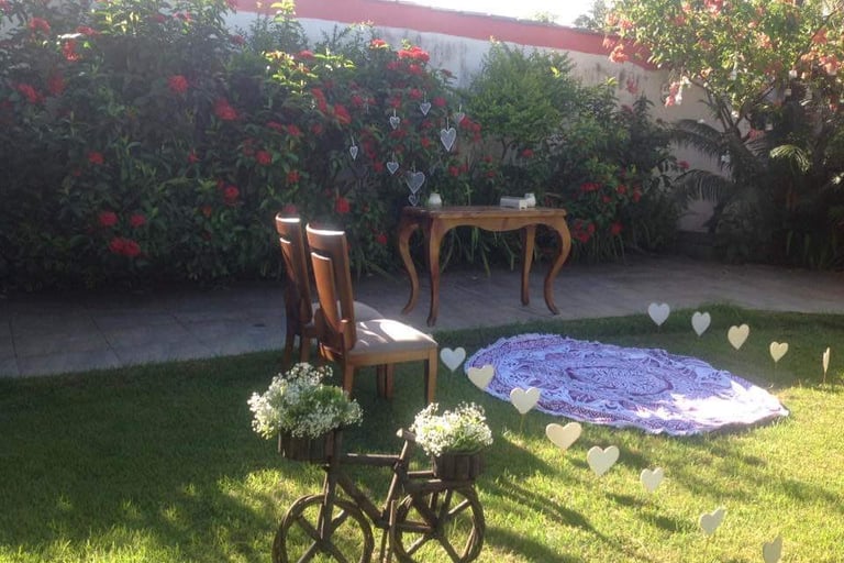 O ar livre e a vegetação criam um ambiente agradável e relaxante. Os convidados se sentirão mais à vontade e confortáveis.